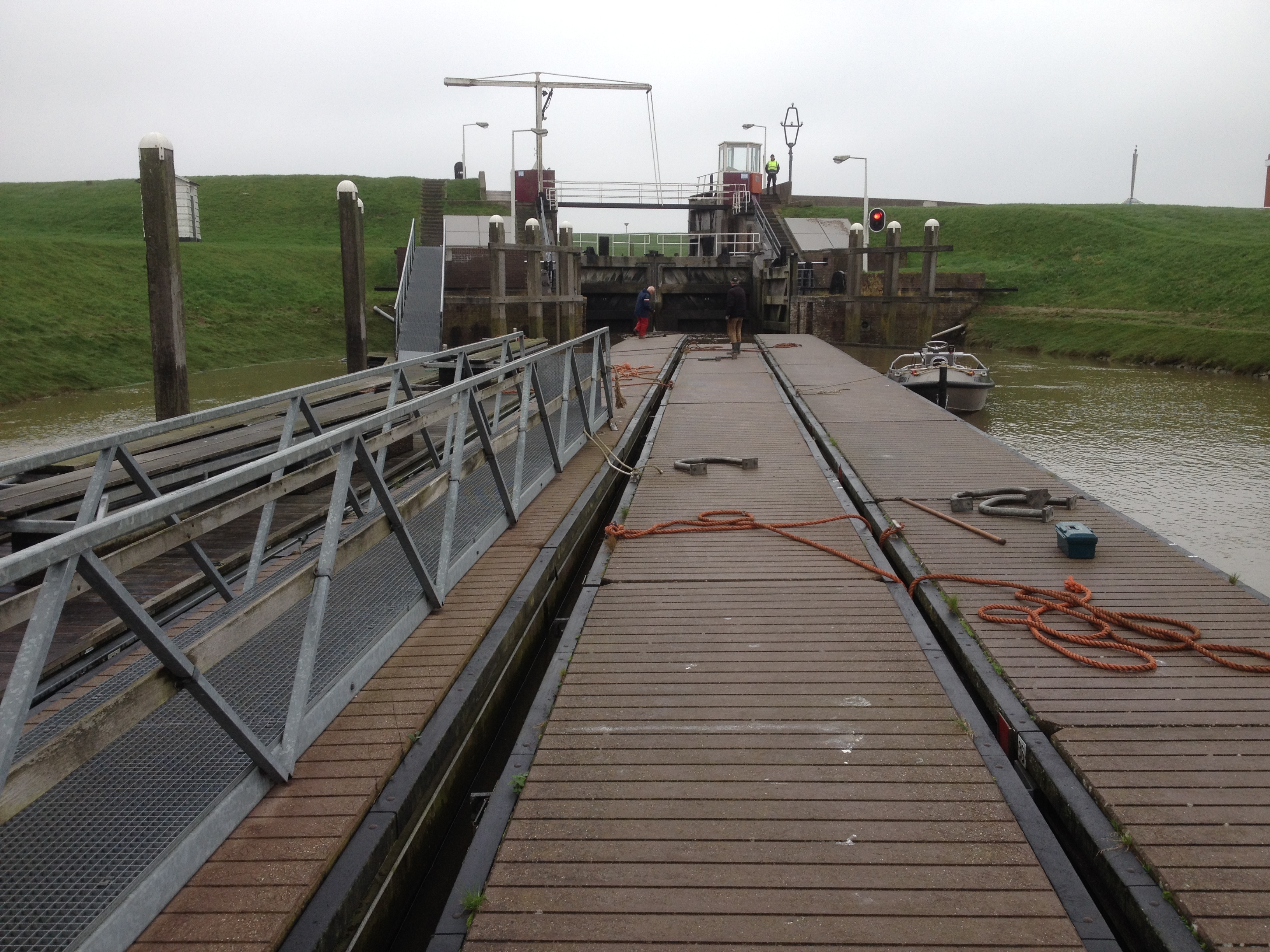 Incidentje met steigers uitvaren… Bij het uitvaren van de steigers is een van de sleepboten gekapseisd. Tijdens een moeilijke manoeuvre ging de achterste sleepboot volledig over de kop. Gelukkig deden zich geen persoonlijke ongelukken voor, wel had schipper Douwe Bosker een nat pak.